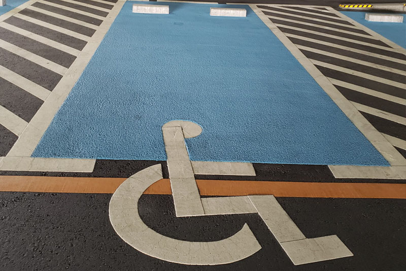 Five parking spaces are available in the parking lot exclusively for wheelchair users.